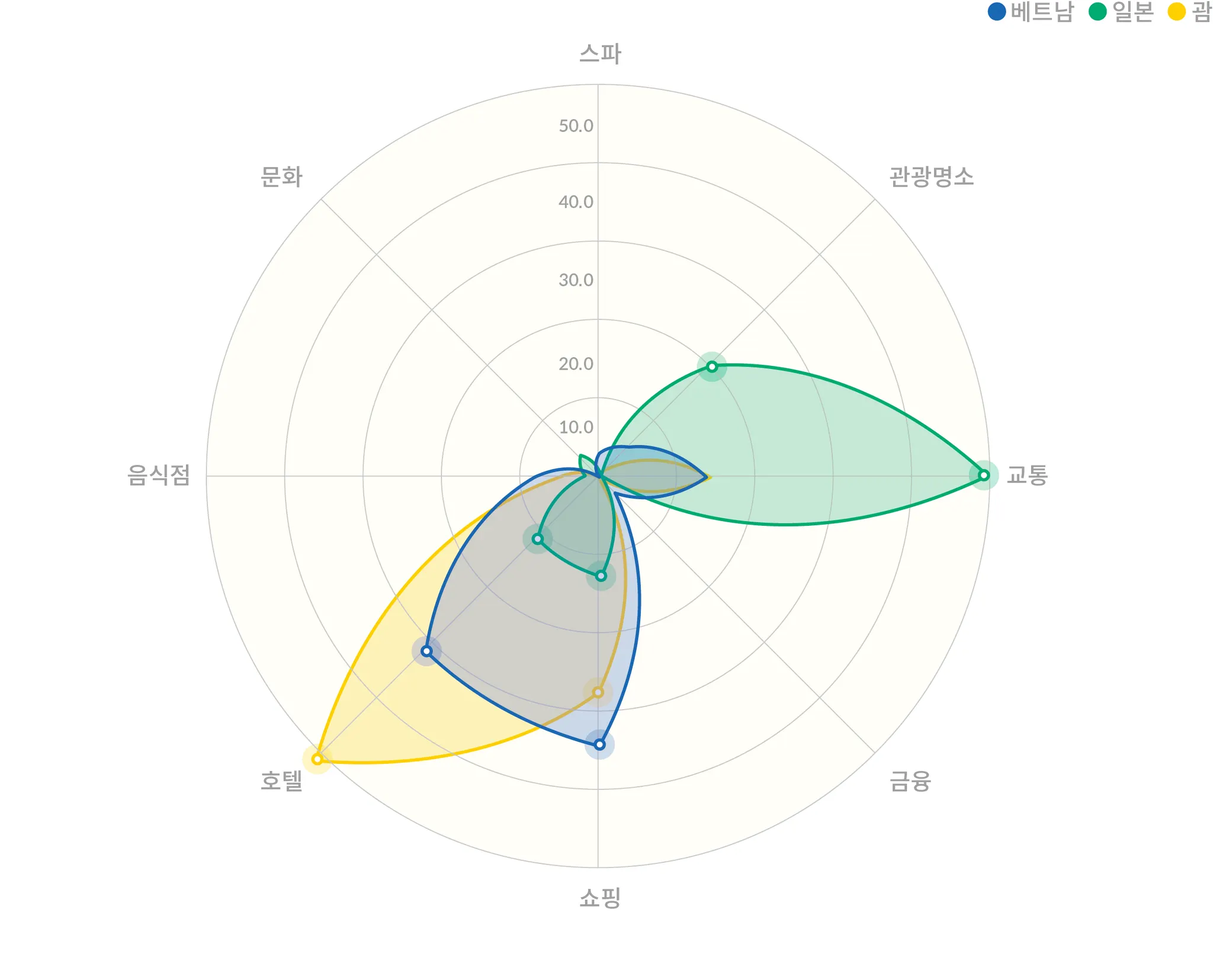 베트남 vs. 일본 vs. 괌: 도착지 카테고리 비교