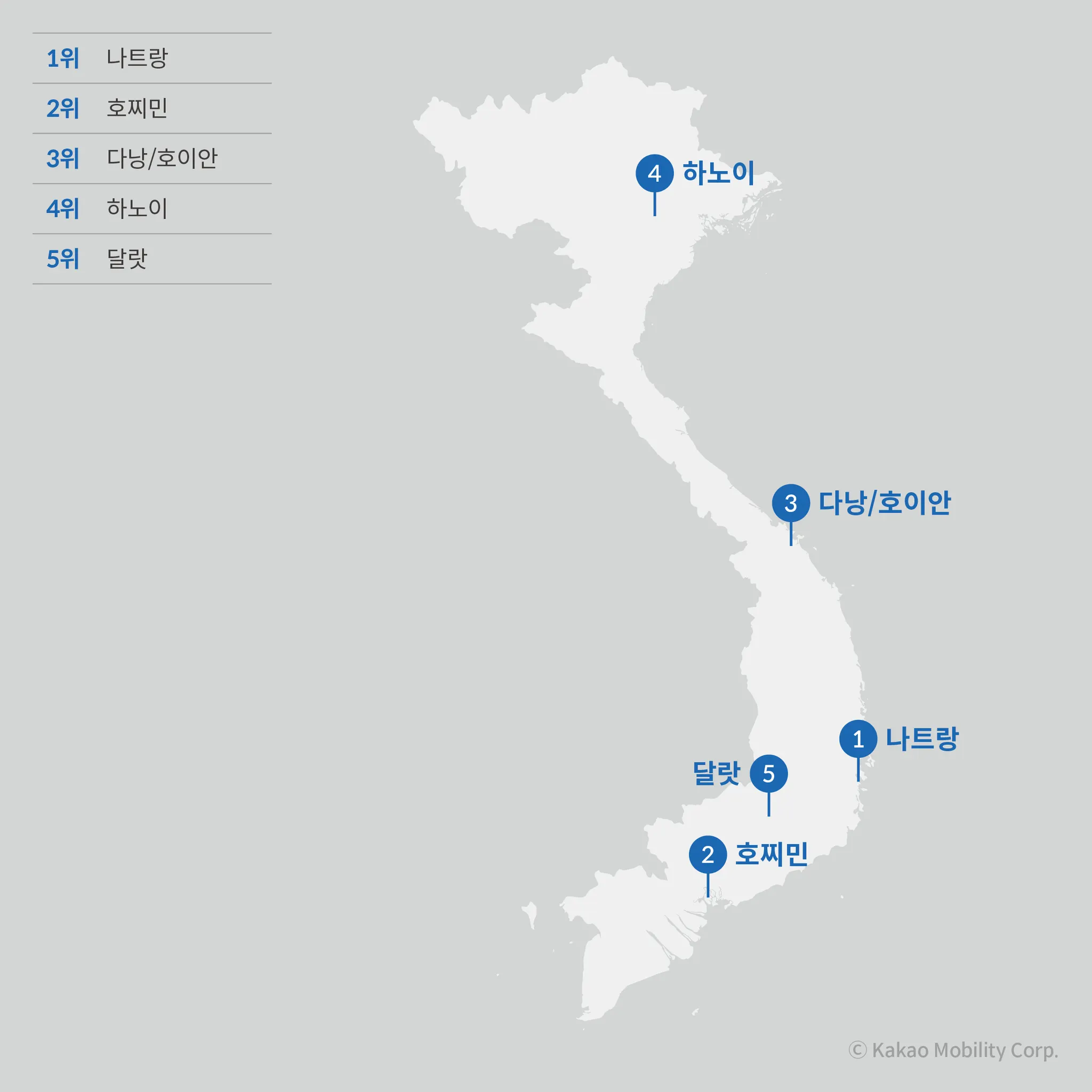 베트남 : 카카오 T 해외 인기 도시 TOP 5