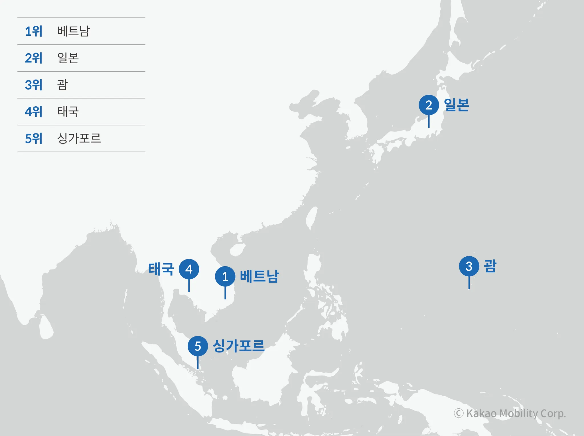 카카오 T 해외 이동 서비스 인기 국가 TOP 5
