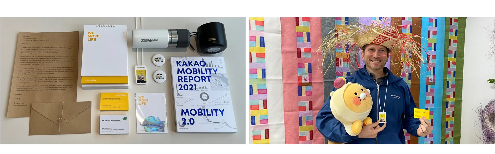 카카오모빌리티의 답례품과 로드리고 코로넬 전 주한니카라과 대사의 인증샷