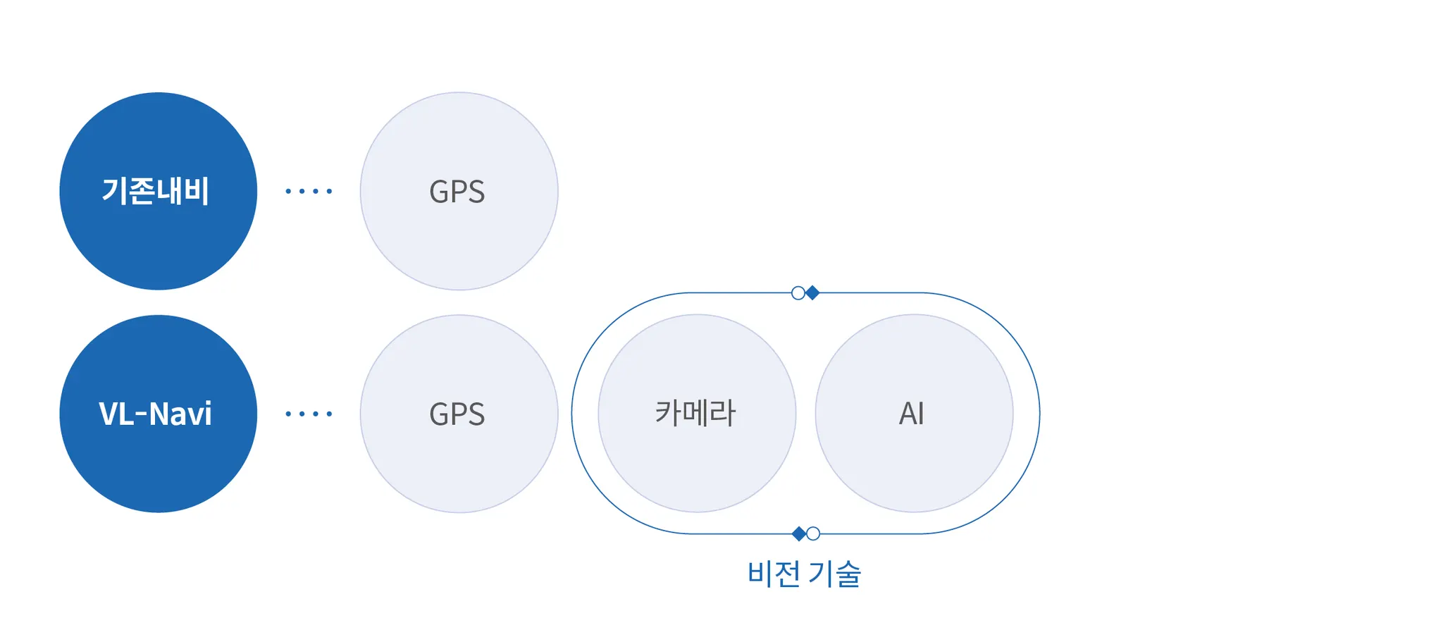 자율주행차는 이러한 고성능 장비와 컴퓨팅 자원을 바탕으로 높은 수준의 자율주행 기능을 제공하지만, 일반 사용자가 접근하기에는 아직 한계가 있다. 반면 스마트폰의 내비게이션 앱은 접근성은 높지만, 제한된 성능으로 인해 정밀한 내비게이션 서비스를 제공하기 어렵다. VL-Navi는 이 둘의 장점을 결합하여 최적점을 찾고자 한다. 스마트폰이라는 대중적인 플랫폼을 기반으로 하면서도, 정밀지도와 인공지능 기술을 활용하여 자율주행차에 준하는 수준의 내비게이션 서비스를 제공하는 것이 목표다.