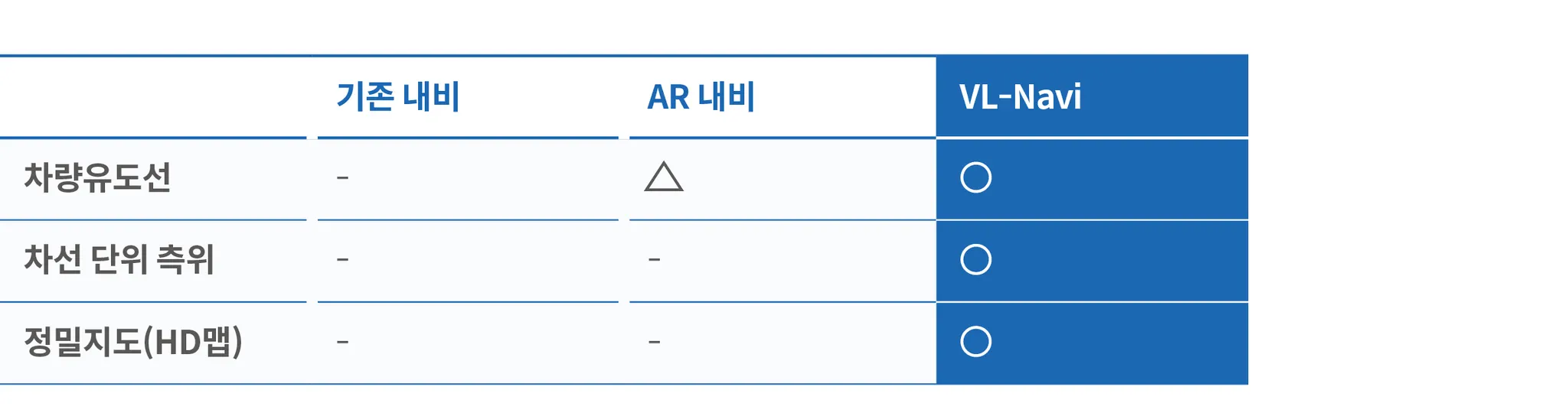 VL-Navi는 노면 색깔 유도선의 개념을 차용하면서도, 첨단 기술을 통해 그 한계를 극복하였다. 정밀지도를 통한 차선 단위 경로 계획, 멀티센서 융합을 통한 정확한 위치 추정, 그리고 인공지능 기반의 실시간 도로 인식은 VL-Navi의 핵심 기술이다. 이를 통해 VL-Navi는 복잡한 도로 상황에서도 운전자에게 정확하고 직관적인 경로 안내를 제공한다.