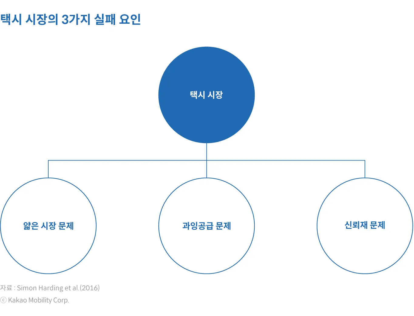 모빌리티 플랫폼이 도입된 이후에 진행된 연구들도 다수 존재하는데, 대표적으로 Simon Harding et al.(2016)은 「Taxi apps, regulation, and the market for taxi journeys」에서 택시 시장에 필요했던 이유와 모빌리티 플랫폼 도입 이후의 변화를 조망하였다. OECD/ITF(2016)는 「App-Based Ride and Taxi Services:Principles for Regulatation」에서 기존의 진입규제, 사업구역 제한, 요금규제 등이 현재 도시의 모빌리티 수요의 실제와 맞지 않으며, 특히나 모빌리티 플랫폼 도입 이후의 시장 환경에도 부합하지 않음을 보여주었다. 기존 문헌을 토대로 택시 시장에 규제가 필요했던 이유는 3가지로 정리할 수 있다. 얇은 시장 문제, 과잉공급 문제, 신뢰재 문제가 그것이다.