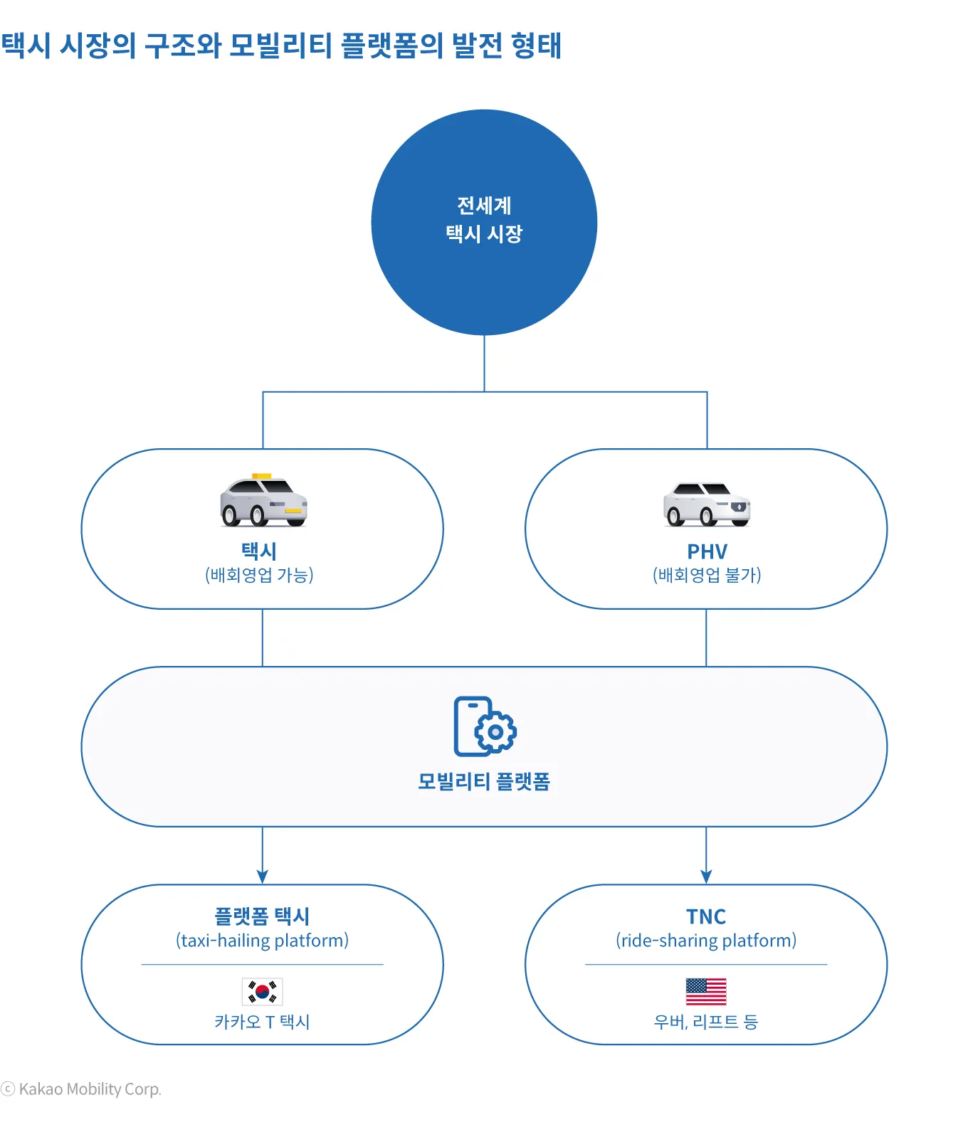 모빌리티 플랫폼이 택시 중심이냐 PHV 중심이냐 하는 것은 어떤 제도가 우월하다고 단정할 수 없다. 지역마다 택시 산업의 성장 배경과 구조가 모두 다르기 때문이다. 우리나라의 경우, 사회적 대타협 이후 나온 플랫폼 택시 제도 도입 방안을 「혁신성장과 상생발전을 위한 택시제도 개편방안」이라고 명명한 것에서 볼 수 있듯이 카카오모빌리티와 같은 플랫폼은 '상생형 혁신(win-win innovation)'을 추구해왔다. 이는 일부 글로벌 모빌리티 플랫폼이 기존 사업자를 배제시키는 '제로섬 혁신(zero-sum innovation)' 결과를 초래했다고 지적되는 점과 비교되는 특징이다. 새로운 서비스를 선보이는 속도는 상대적으로 더딜 수 있지만, 기존 택시업계와 제도를 존중하면서 함께 발전하는 방향에 대해서는 상대적으로 성숙한 측면이 있다.