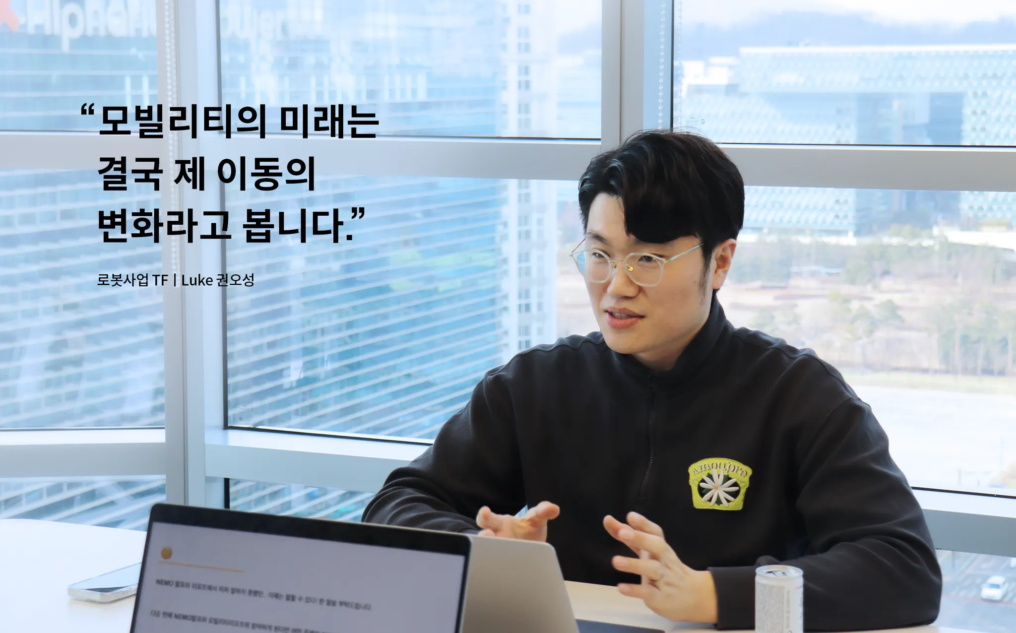 A. 저는 아무래도 미래 모빌리티 관련된 일을 해오고 있고 입사 자체도 그 방향으로 했다 보니까 모빌리티는 결국에는 넥스트라는 관점, 즉 미래라는 관점에서 많이 바라보고 있는 것 같아요. 제가 생각하는 모빌리티의 미래는 결국에는 제 이동의 변화라고 보고 있고요. 제 이동의 변화에는 단순히 제가 이동하는 것에서 나아가 제가 이동하지 않아도 주변이 이동해서 제가 이동할 수 있는 효과가 나올 수 있는, 세상 전체가 이동해서 제가 이동하게 되는 방식의 모빌리티들을 미래의 관점으로 많이 바라보고 있는 것 같아요.