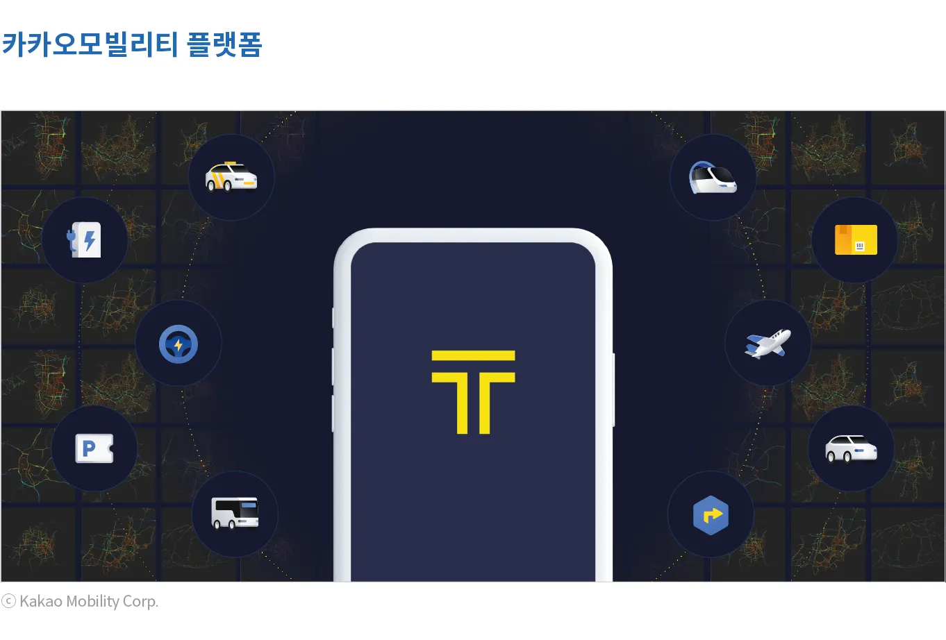 한국을 대표하는 모빌리티 플랫폼으로 자리매김한 카카오모빌리티는 글로벌 차원으로 벌어지고 있는 이동 혁신의 최전선에서 발을 맞추고 있다. 택시를 통해서 이동 수요자와 공급자를 성공적으로 연결한 경험을 택시를 넘어 자전거, 셔틀, 버스, 기차, 항공, 주차 등 모든 유형의 이동으로 확장해 왔다. 카카오 T와 더불어 운전자를 위한 플랫폼으로 확장되고 있는 카카오내비를 함께 성공적으로 운영하면서 승차공유 중심으로 발전한 글로벌 모빌리티 업계에서는 보기 드문 사례를 만들어 가고 있기도 하다. 최근에는 사람의 이동을 넘어서 사물의 이동, 서비스의 이동까지 모빌리티 플랫폼으로 담아내면서 편리하고 빠른 이동을 넘어서 불필요한 이동은 사람이 직접 이동하지 않아도 되는 시대를 준비하고 있다.