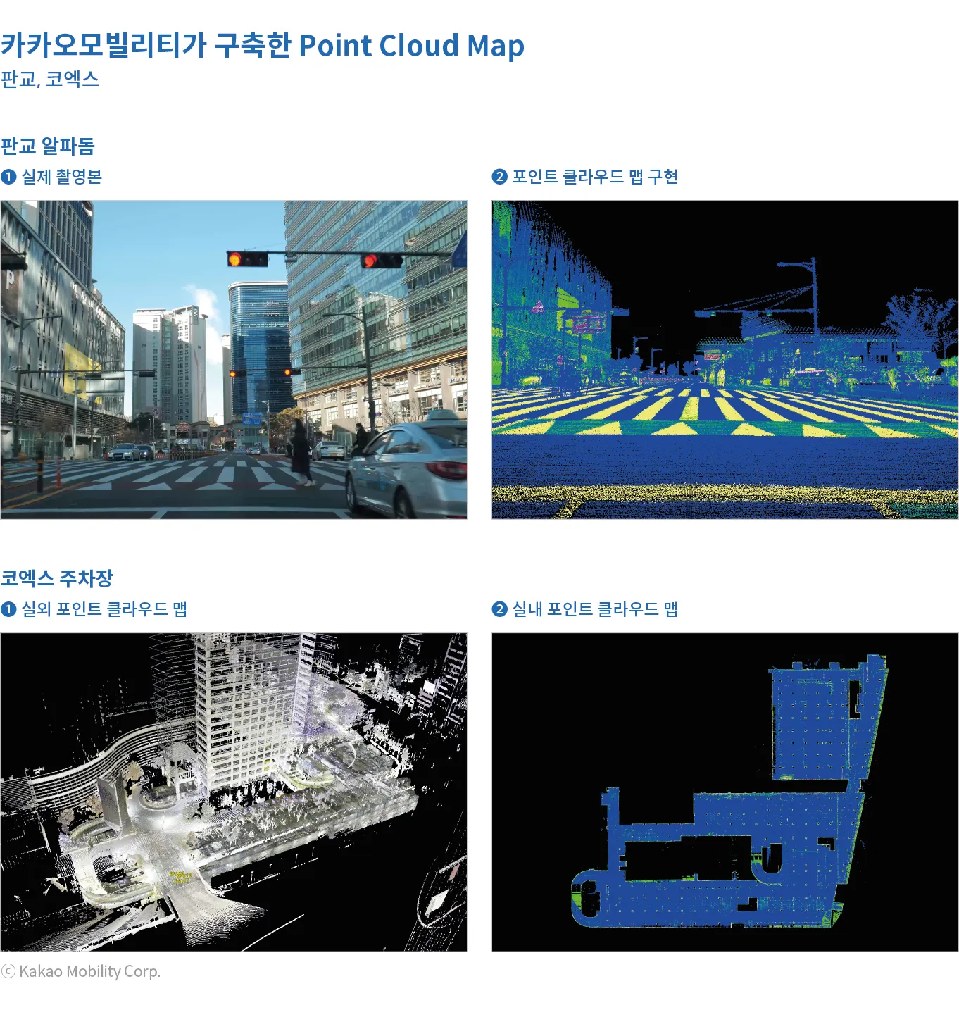 이러한 기술을 바탕으로 카카오모빌리티는 실내・외 고정밀 지도(HD Map) 약 10,000km를 구축하였으며, 2023년에는 자율주행특구를 포함하여 고속도로, 전용도로 약 20,000km를 구축 및 업데이트할 계획을 가지고 있다.