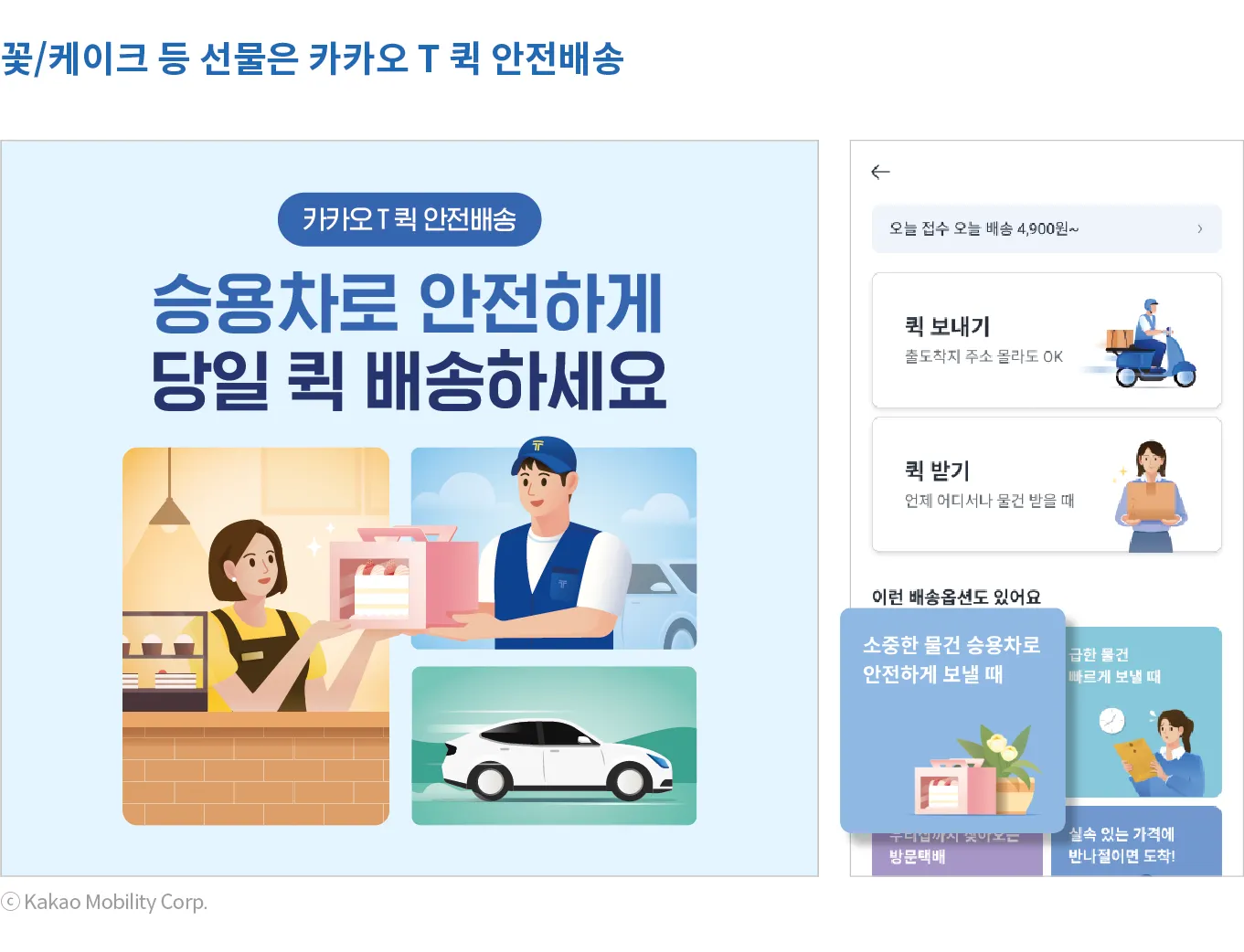 승용차로 손상 없이 안전하게, 카카오 T 퀵 안전배송!