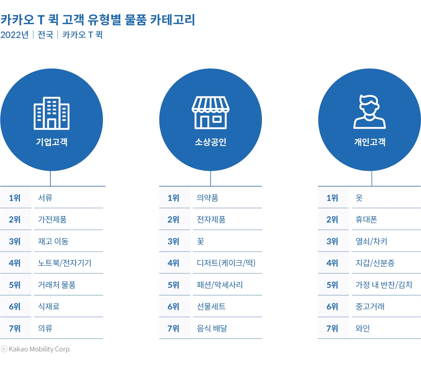 그렇다면 개인과 소상공인들은 카카오 T 퀵을 통해 어떤 물품들을 주고받고 있을까?