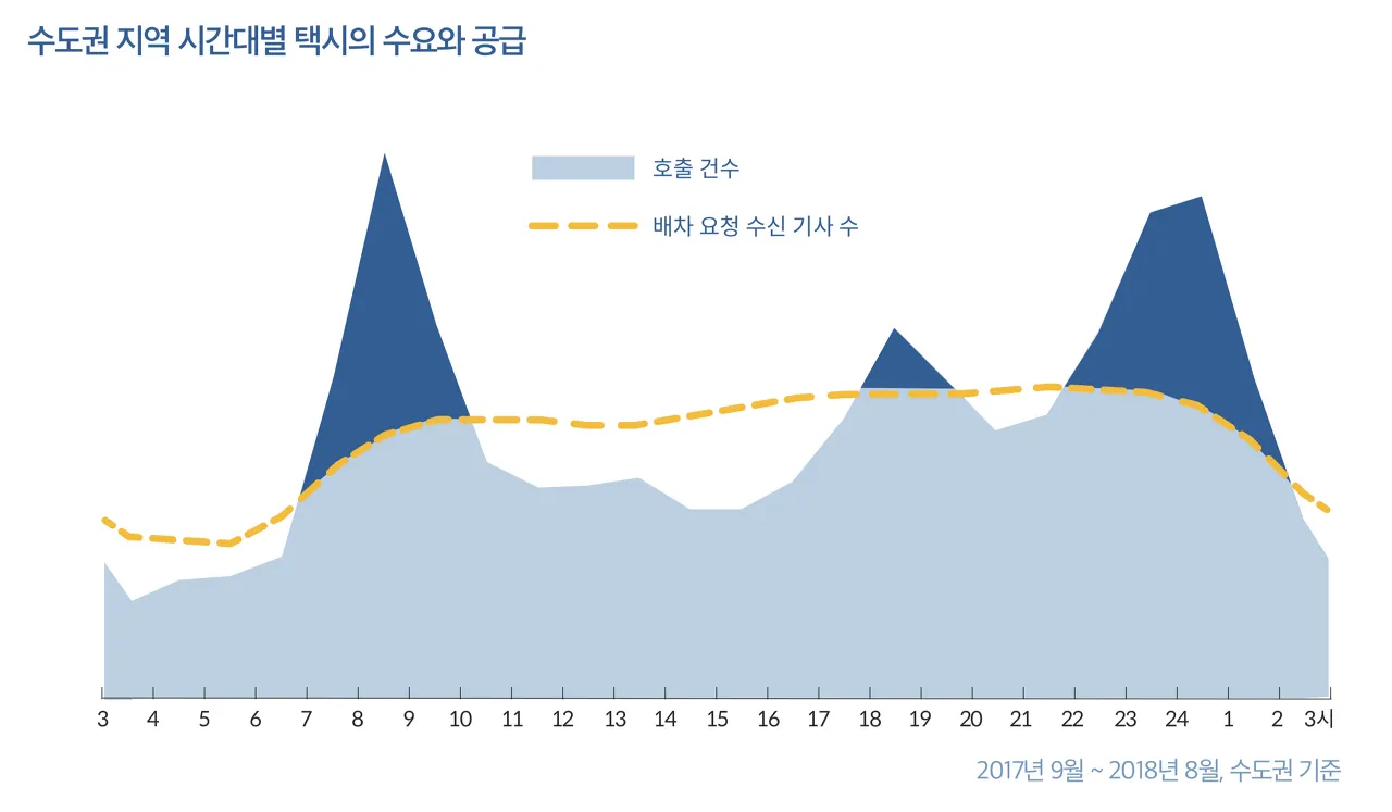 여기에 폭염, 혹한, 폭우, 폭설 등 악천후나 월드컵, 지역축제 같은 이벤트는 이동 수요(승객들의 호출량)를 폭발적으로 증가시켜 수요와 공급의 불균형을 가중시키기도 합니다.