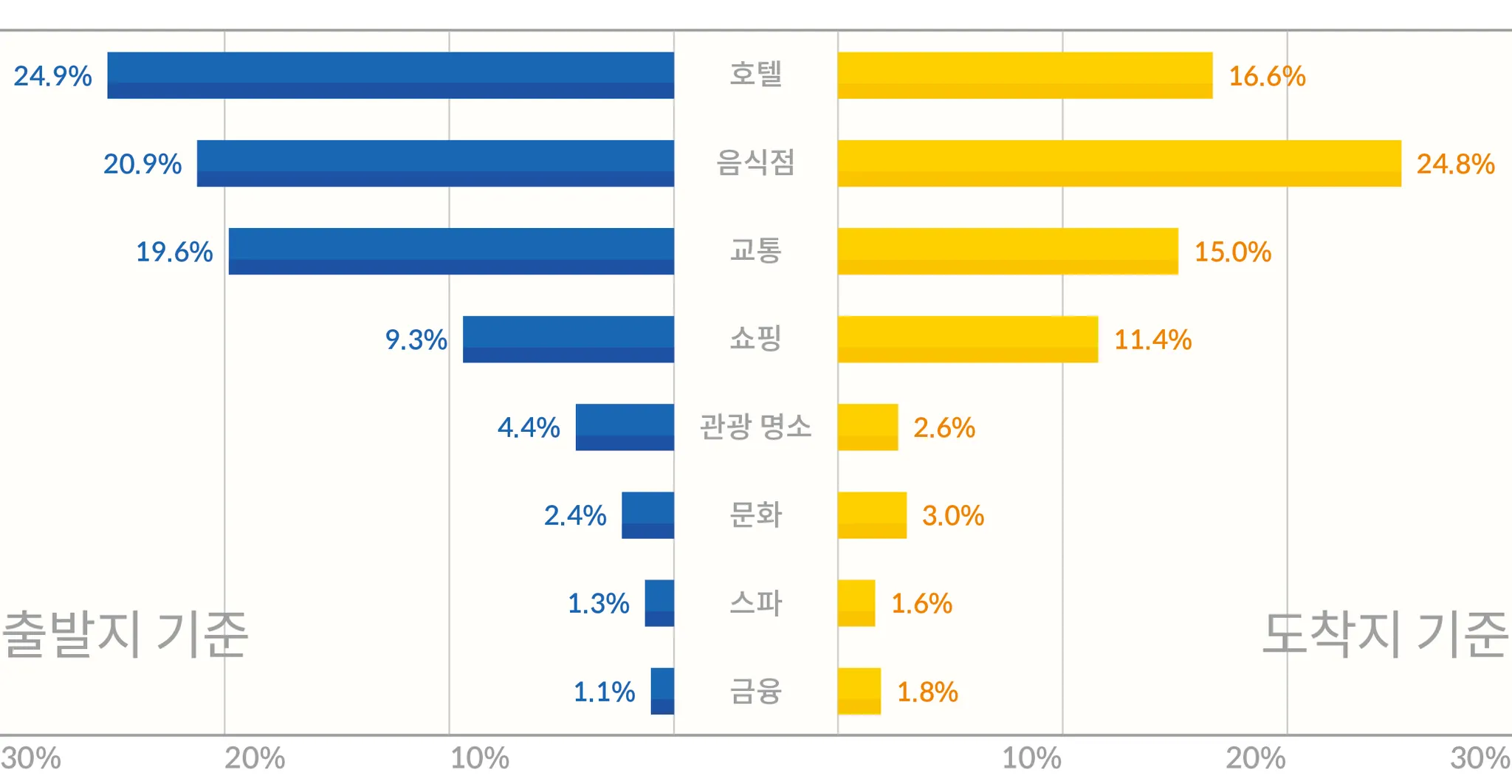 외국인들이 이용한 택시의 주된 출발지로는 호텔 등 숙박 시설이 가장 많았다. 관광객이 호텔로부터 타 관광지로 이동한 케이스로 추정된다. 그 뒤로는 음식점에서 출발하는 경우와 렌터카, 지하철 등 다른 교통수단과의 연결을 목적으로 지하철역, 주차장 등으로부터 주로 출발하는 경우가 뒤를 이었다.