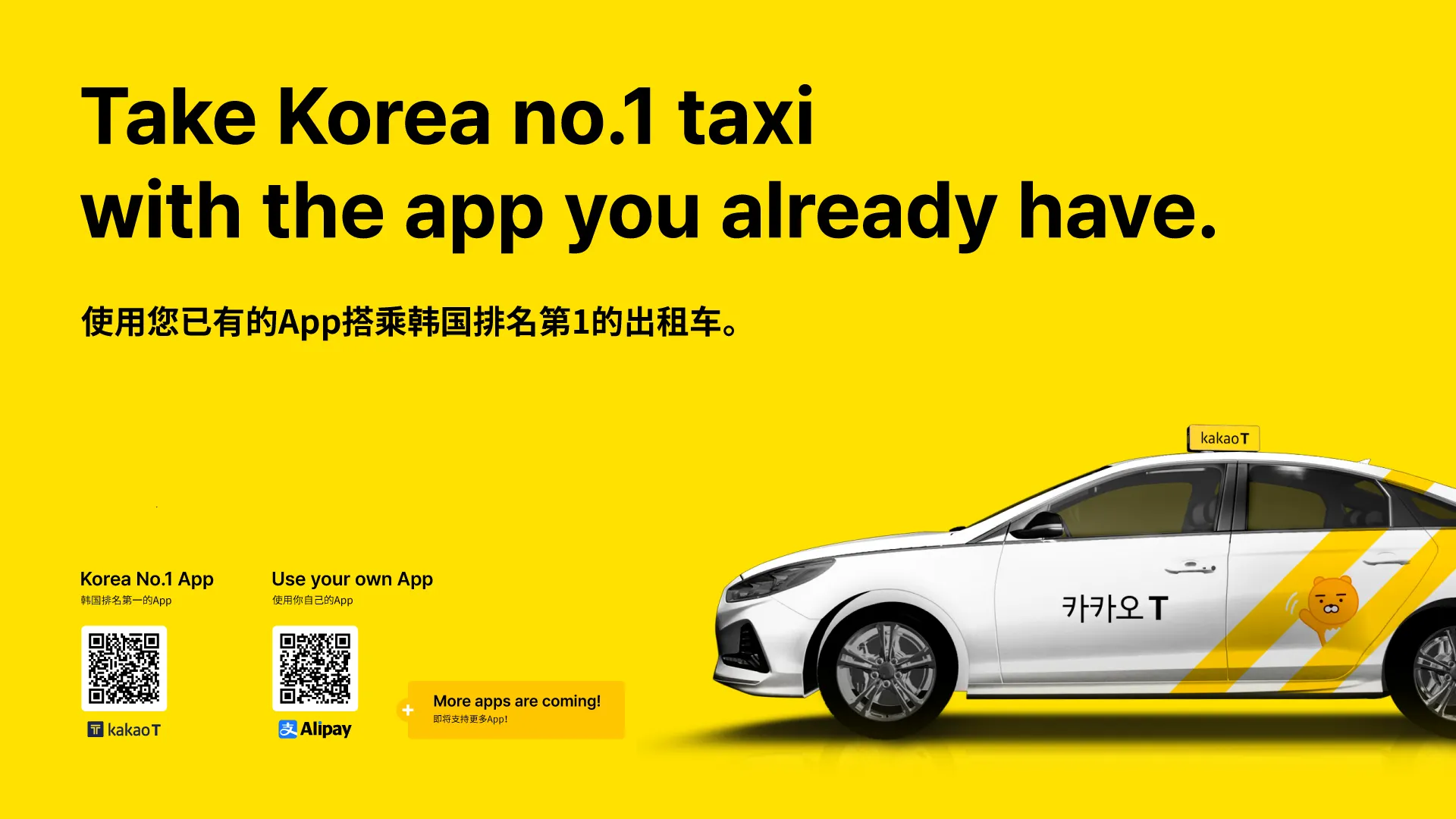 중국이 2023년 8월부터 단체 관광을 다시 허용함에 따라, 카카오모빌리티는 중국인들이 많이 사용하는 알리페이 앱을 우선적으로 연동해 중국인 관광객들의 택시 이용 편의를 도모하고 있다. 또한 알리페이 외에도 다양한 글로벌 모빌리티 앱과의 연동을 확대해 나갈 예정이다.